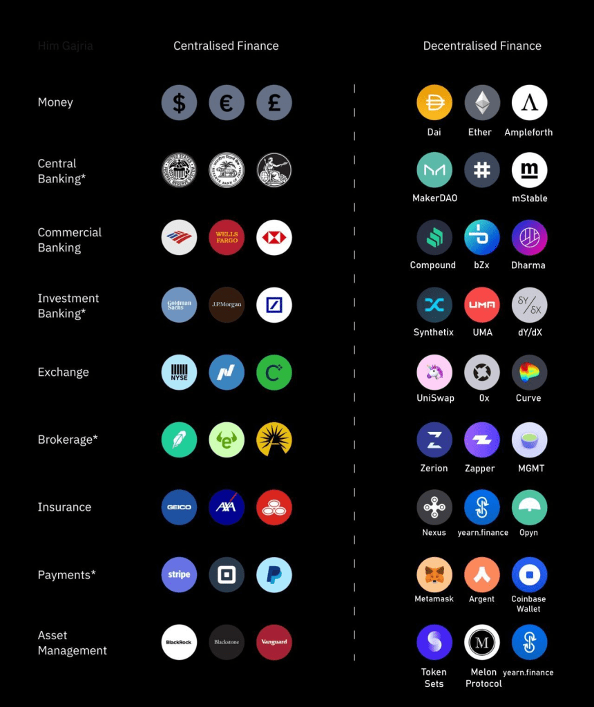 DeFi offers a wide range of financial services including lending, borrowing, trading, and insurance. The use of smart contracts on blockchain networks allows DeFi to provide transparent and secure financial services.