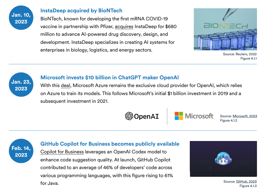 In 2022, AI infrastructure/research/governance had a total investment of 0.82 billion, however in 2023, there was a a huge surge in total investment in this sector to 18.27 billion, more than 20x the total investment of the previous year (data). The prominence of this surge can be reflected by the large investment in companies building AI applications such as OpenAI, Anthropic and inflection AI.