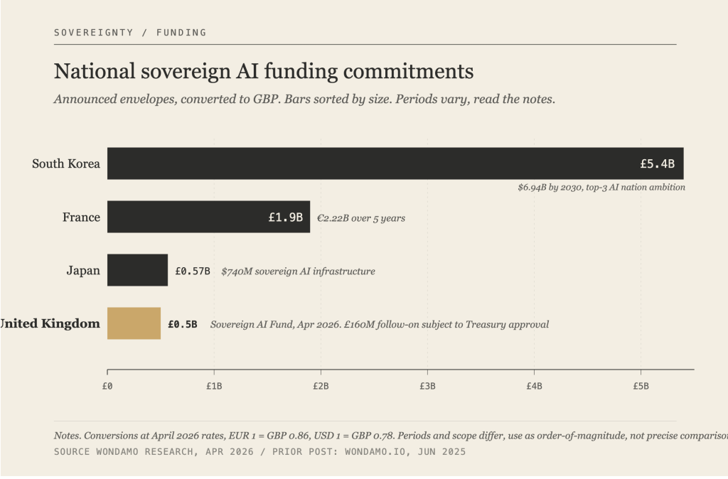 Ten months ago on Wondamo, I wrote that the United Kingdom was running out of time to decide whether it wanted to be a sovereign AI power or a well-behaved customer of one. Over 80% of UK organisations’ AI usage sat on American foundation models. France had already put €2.22 billion on the table over five years, Japan $740 million, South Korea $6.94 billion. Britain had statements of intent and an AI Safety Institute. That was it.